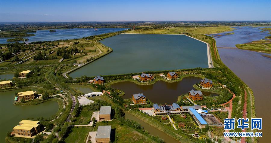 这是高台国家城市湿地公园(9月7日无人机拍摄)。
