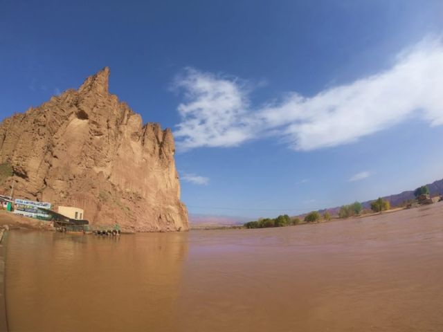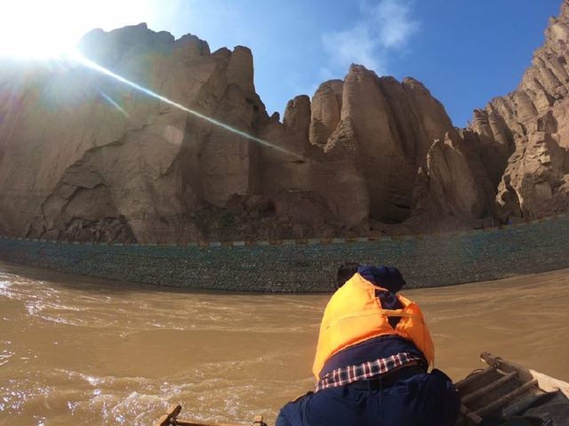 包能全的羊皮筏子顺利靠岸。导游王子芹正站在岸边,等着带领游客们进入黄河石林核心景区的饮马沟大峡谷。