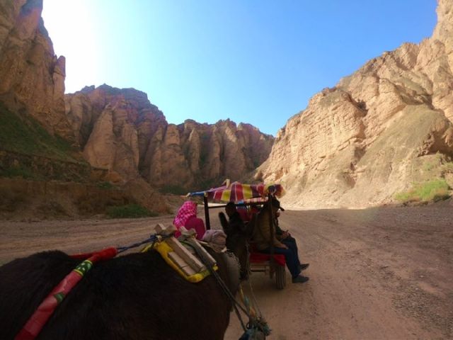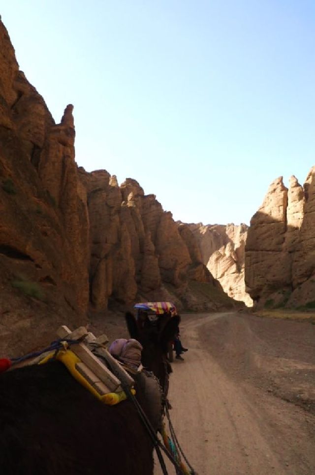 刚进峡谷,王子芹就带着游客们换乘了当地特色交通工具——驴车。车行峡谷,王子芹为大家一一介绍景观:“游客可以看着石柱石笋发挥自己的想象,就好比一千个读者眼中有一千个哈姆雷特。”