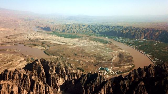 龙湾村面向黄河、背靠石林,人多地少。村里老人回忆,过去的生活不富裕;本世纪初,为了解决生存和发展问题,当地政府劈山为路,鼓励村民走出大山谋生计,还请来地质专家开发出了黄河石林这一景观。