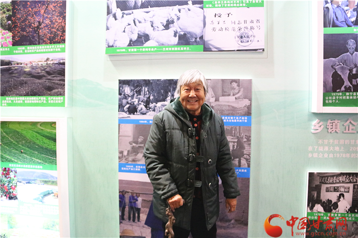 高学兰,她身后的展板讲述她的故事,见证改革开放第一缕春风。