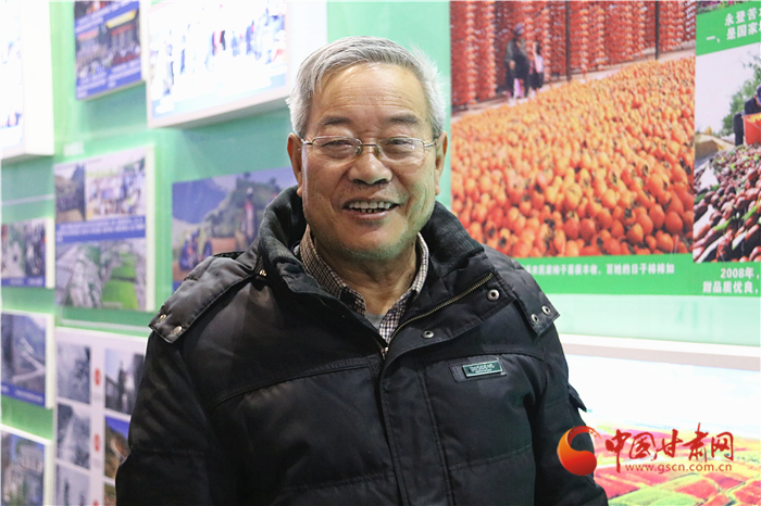 达文虎,他的身后是陇人骄子颁奖舞台。
