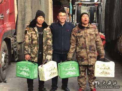 完成了小辉辉的送货任务后,两人于7日晚间回到兰州,老板陈滨德专门为他们设宴接风,对他们给予了表彰奖励。与友人闲谈时知道此事的兰州小魏哥软儿梨负责人魏永波,马上带着自己生产的软儿梨来到嘉友物流公司,为重新装货后准备再次进藏的张延斌、王林中送上6箱兰州软儿梨,希望他们一路平安。