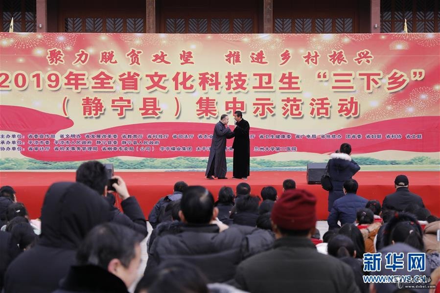 当日,甘肃省2019年文化科技卫生“三下乡”集中示范活动在甘肃省静宁县举行,文化、医疗和科技工作者为当地群众送去贴心服务和新春祝福。