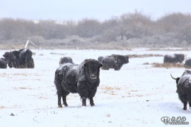 1月20日,几头牦牛在山丹马场鸾鸟湖旁觅食。新华社发(王超 摄)