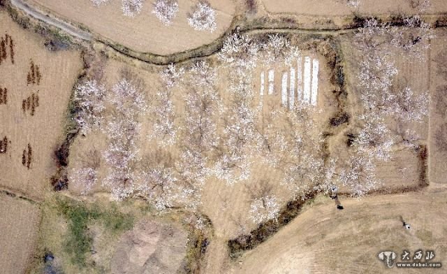 这是4月3日无人机在东乡族自治县唐汪镇拍摄的杏花。新华社记者范培珅摄