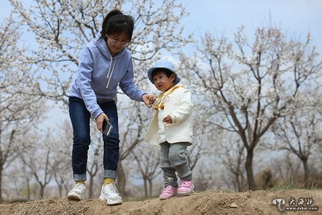 4月3日,游客在东乡族自治县唐汪镇的杏花林中游玩。新华社记者马平摄