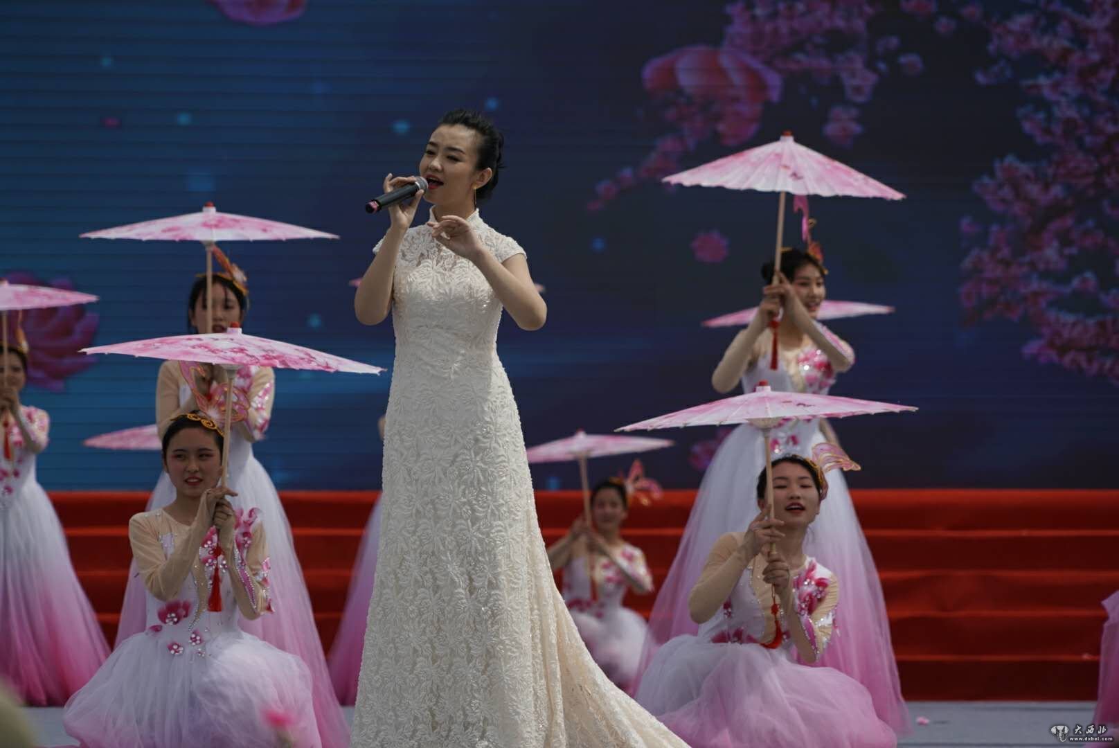 于文华在第36届兰州桃花旅游节开幕式上演唱《桃花迎春》。