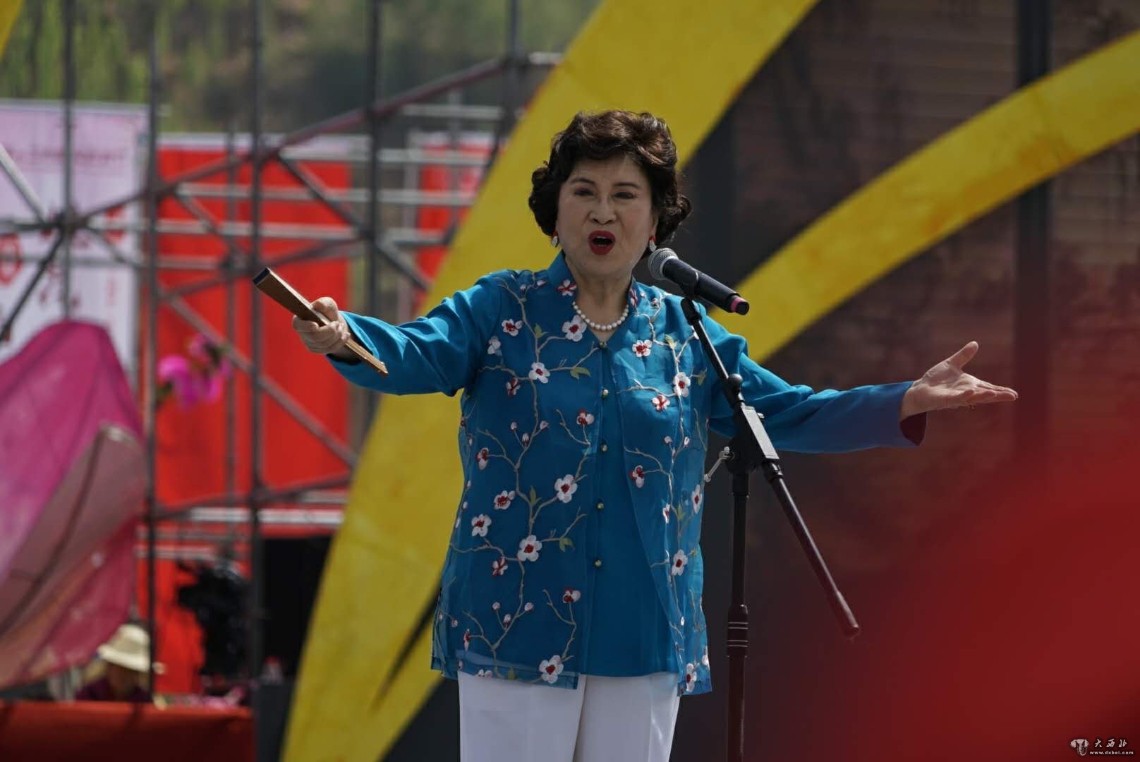 刘兰芳在第36届兰州桃花旅游节开幕式上演说评书《康熙买马》。