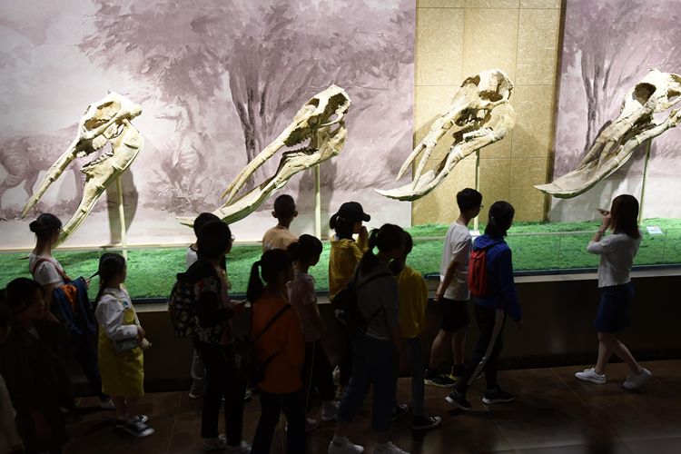 当日是“六一”国际儿童节,不少小朋友来到甘肃和政古动物化石博物馆参观,学习古生物知识。新华社发(史有东 摄)