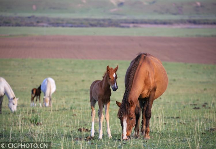 ↑6月4日拍摄的甘肃山丹马场的小马驹。CICPHOTO/王超 摄