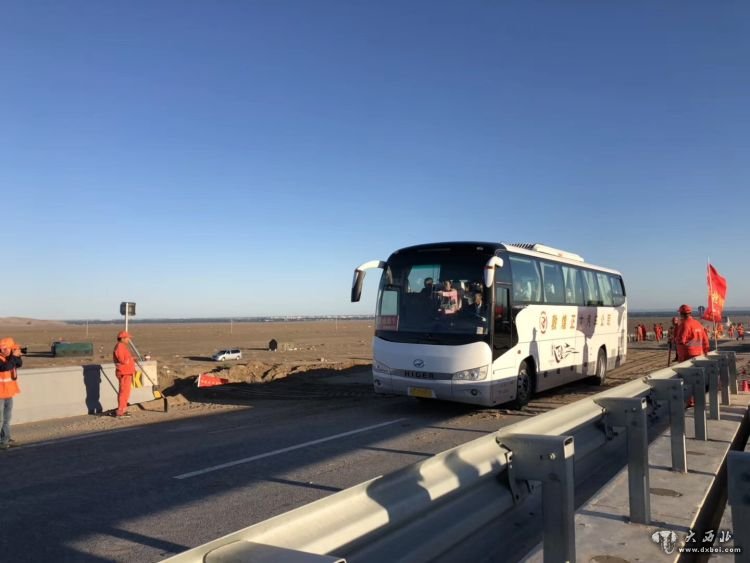 8日,第一辆大巴车通过便道驶向莫高窟。(敦煌研究院供图)