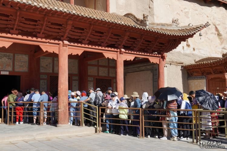 8日,游客在莫高窟参观。(敦煌研究院王嘉奇 摄)
