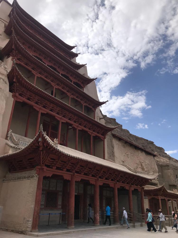 游客进入莫高窟九层楼参观。(资料图片)新华社记者张玉洁摄