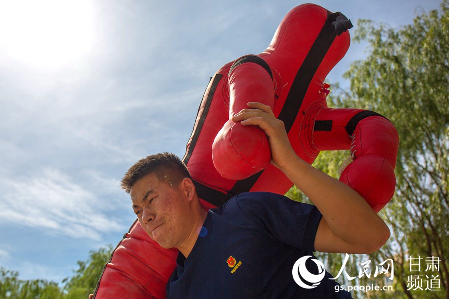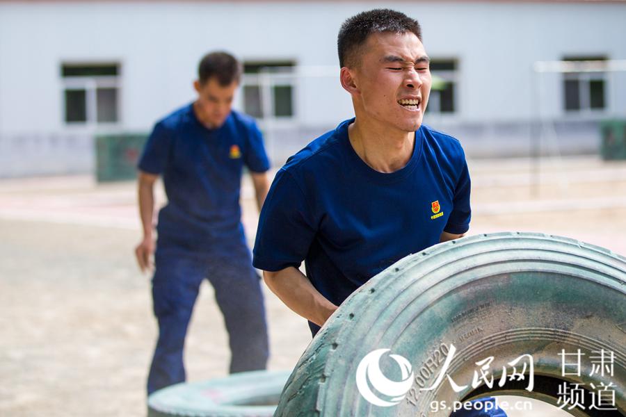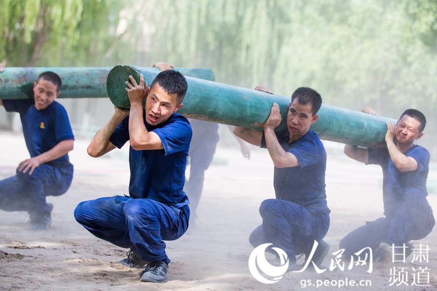 人民网兰州7月17日电(王文嘉)7月16日,甘肃张掖最高气温达35℃,甘肃省森林消防总队张掖市支队指战员战高温、斗酷暑,在热浪翻滚的训练场上开展多样化体能科目训练,磨炼指战员意志、耐力和心理承受能力。