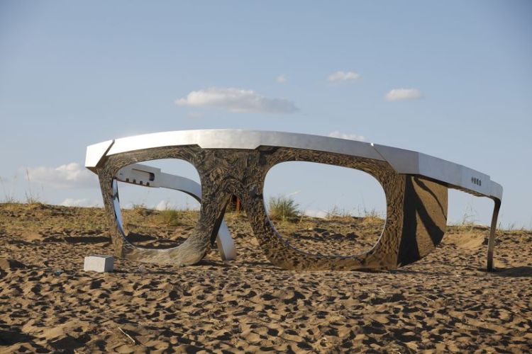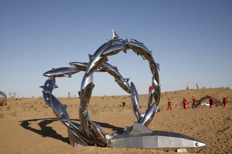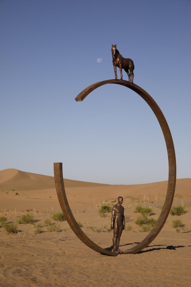 7月20日,2019中国·民勤第二届沙漠雕塑国际创作营在甘肃省武威市民勤县苏武沙漠大景区开幕,来自20个国家和地区的艺术家创作的46件雕塑作品亮相。