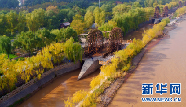 航拍兰州水车和黄河(资料图)。新华社记者 陈斌 摄