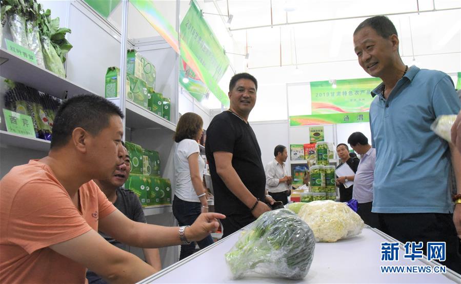7月25日,来自甘肃定西渭源县参展企业的工作人员介绍高原夏菜。新华社记者 张睿 摄