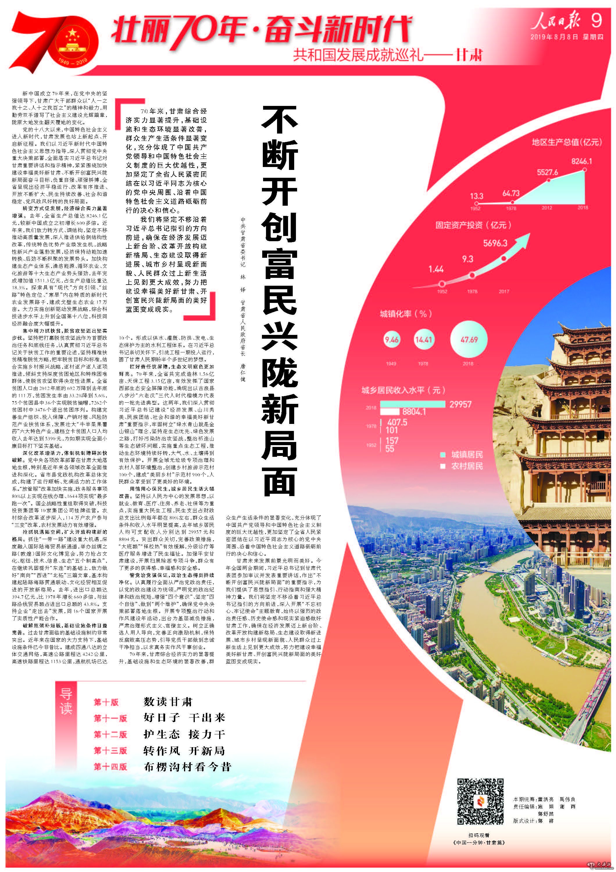 【壮丽70年·奋斗新时代·共和国发展成就巡礼】——甘肃 不断开创富民兴陇新局面