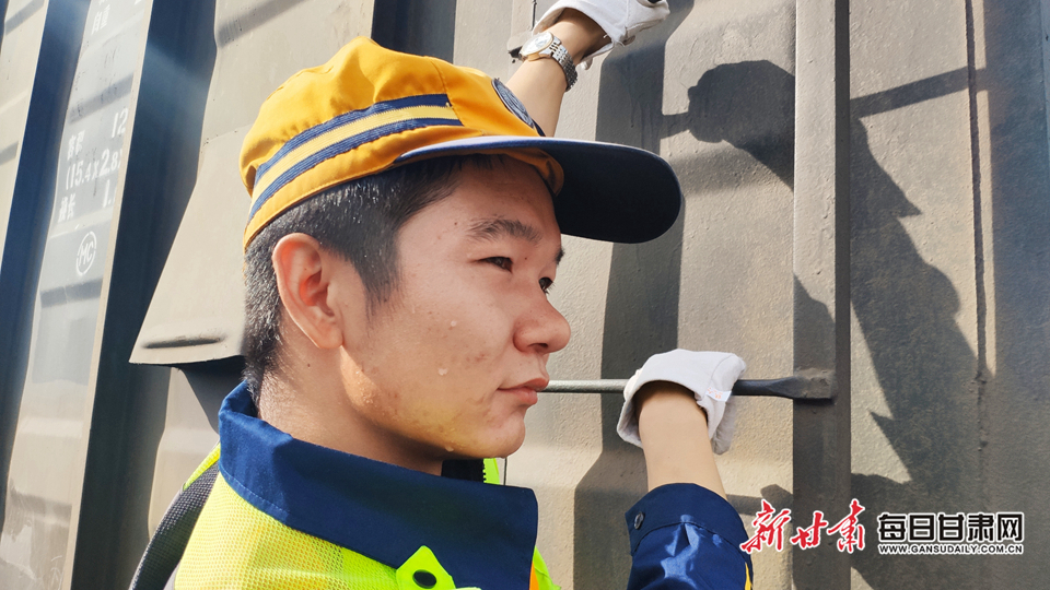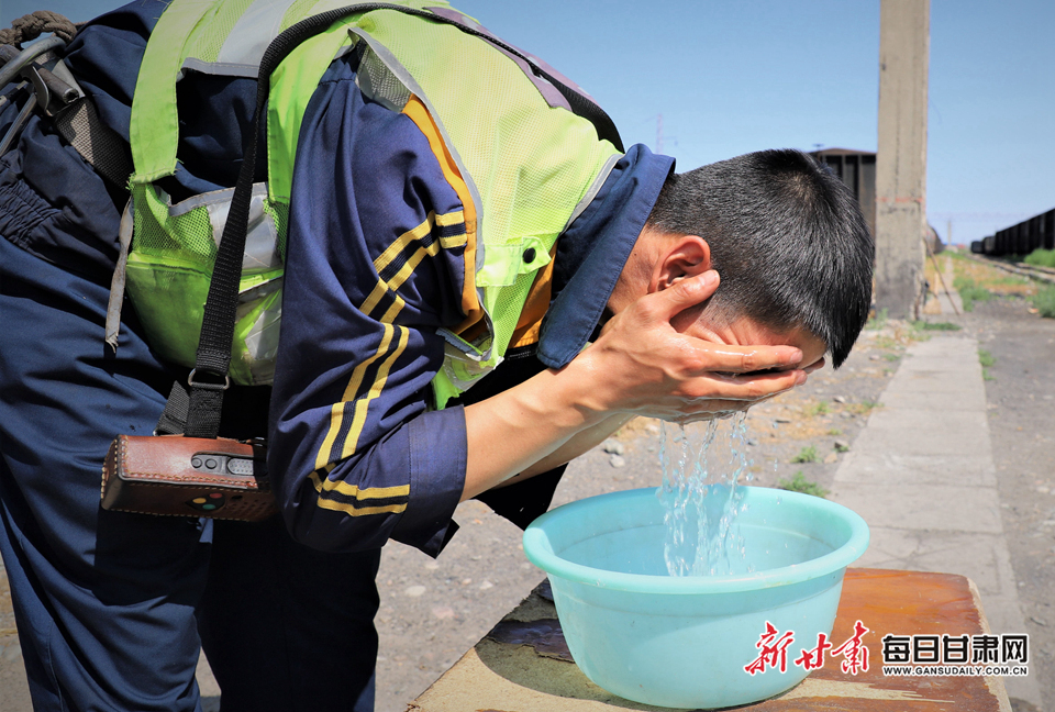 暑气熏蒸的盛夏,热浪一阵高过一阵,虽然地表温度是34℃,但武威南站露天铁路编组场里,暴晒在太阳直射下的钢轨、道砟以及车列温度则是高达50多摄氏度。每天,高延翔都要和同事们“全副武装”,头顶烈日、脚踏热浪地解编列车将近50列,办理辆数更是达到8000多辆。