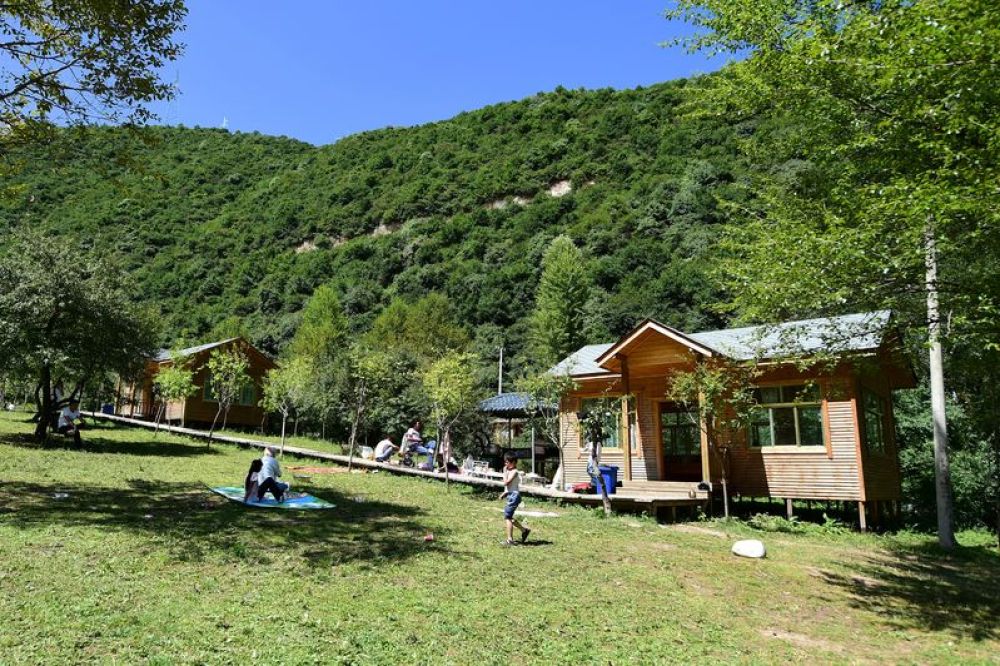 8月14日,游客在香告村一处“藏家乐”休闲。新华社记者 赵丁喆 摄
