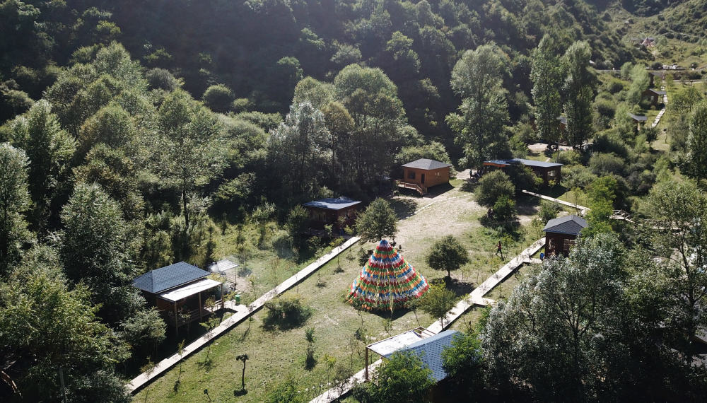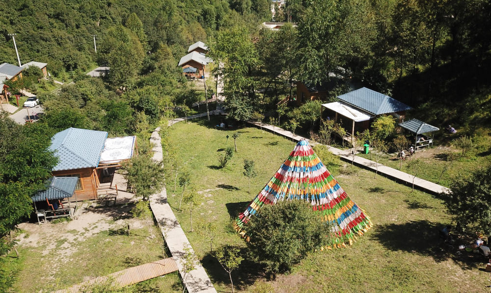 8月14日无人机拍摄的香告村一处“藏家乐”。新华社记者 陈斌 摄