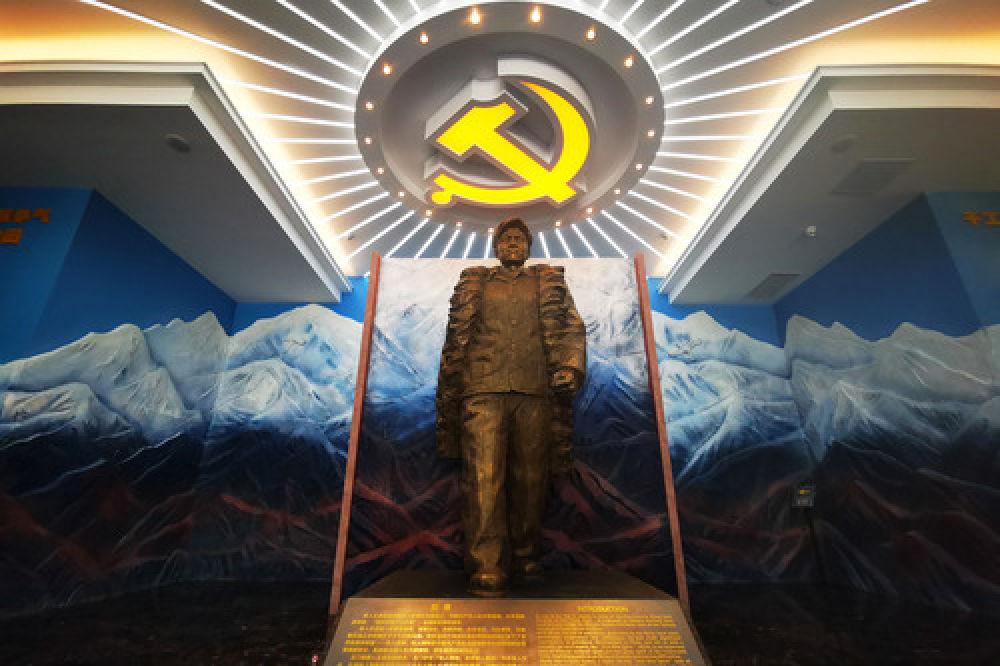这是在玉门铁人王进喜纪念馆拍摄的王进喜塑像(8月16日摄)。新华社记者范培珅摄
