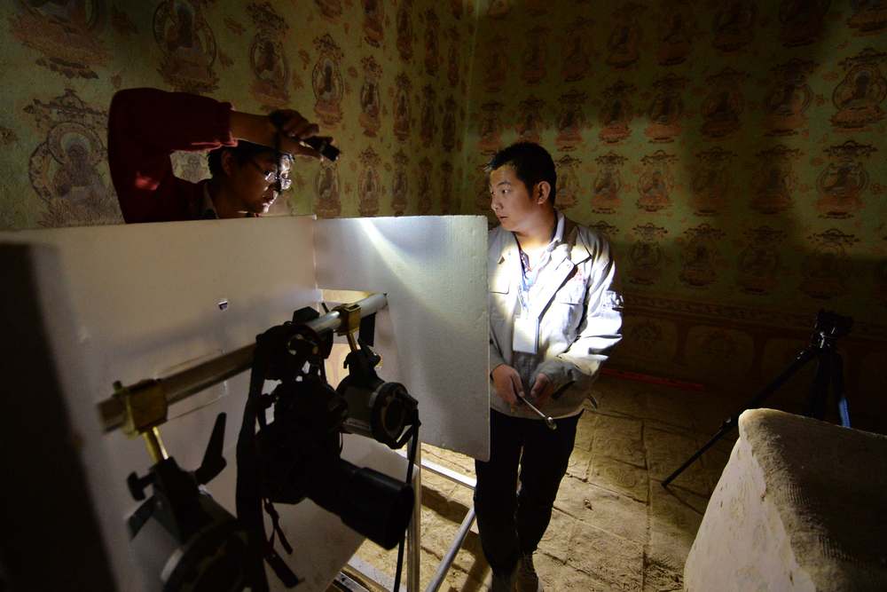 工作人员对莫高窟第152窟进行数字化采集。新华社记者陈斌摄