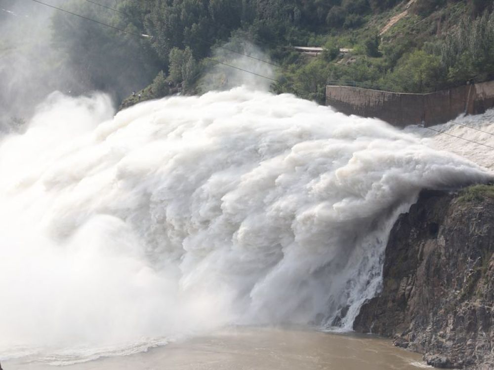 7月10日,刘家峡水库正在泄洪,水如白练。新华社记者张玉洁摄(资料图片)