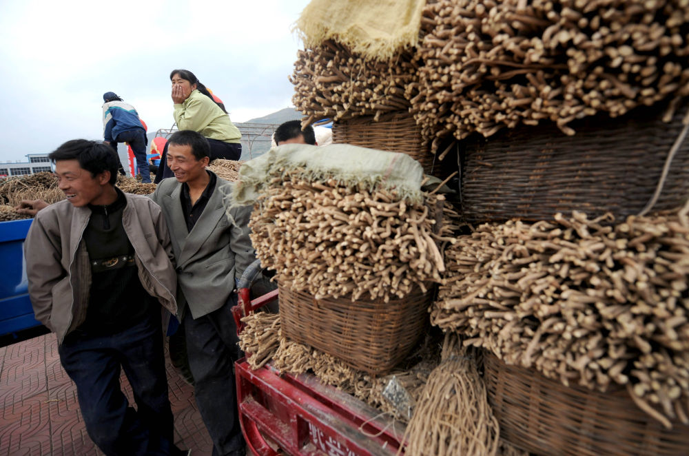 甘肃岷县药农在市场上出售黄芪。新华社记者聂建江摄(资料图片)