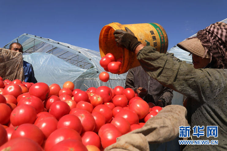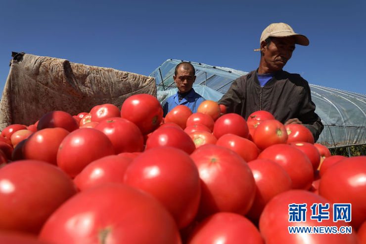 会宁县土门岘镇农民正在收获西红柿。新华社记者程楠 摄
