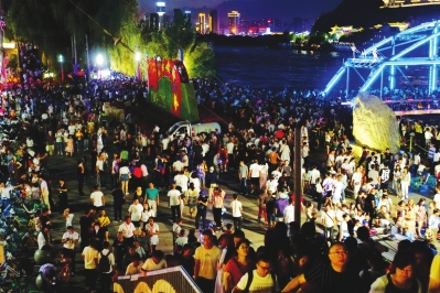 同时,支持“夜金城”地标、商圈和生活圈夜景亮化、美化工程改造提升,完善夜间标识体系、景观小品、休闲设施、灯光设施、环卫设施、公共WiFi(无线网络)及5G(第五代通讯技术)通讯等配套设施建设。在“夜金城”地标、商圈区域,倡导和鼓励企业开展形式多样的购物、餐饮、文化、健身、休闲娱乐等夜间酬宾促销活动,组织开展“畅享兰州乐购金城”系列促消费活动、民族美食文化节、雁滩滨河啤酒广场文化活动、灯光秀等夜间主题活动。