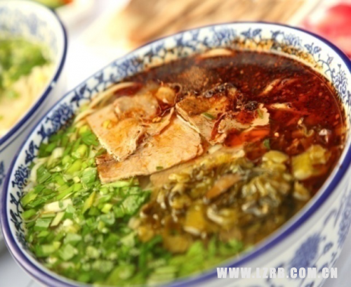 兰州牛肉面,具有牛肉烂软,萝卜白净,辣油红艳,香菜翠绿,面条柔韧、滑利爽口、汤汁、诸味和谐,香味扑鼻,诱人食欲等特点。面条的种类较多,有大宽、二宽、韭叶、一窝丝、"荞麦棱等,还有"二细"、"三细"、"细"、"毛细"等,食客可随爱好自行选择。当地人们描述它是一清、二白、三绿、四红、五黄,即:牛肉汤清如白水,几片白萝卜纯白,汤上漂着鲜绿的蒜苗,辣椒油红,面条光亮透黄。因此,兰州牛肉面的声誉一直延续。