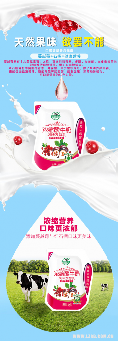 生态牧场、佳选奶源、全程控制、鲜活益菌、及时灌装、新鲜营养,20年不变的坚持。