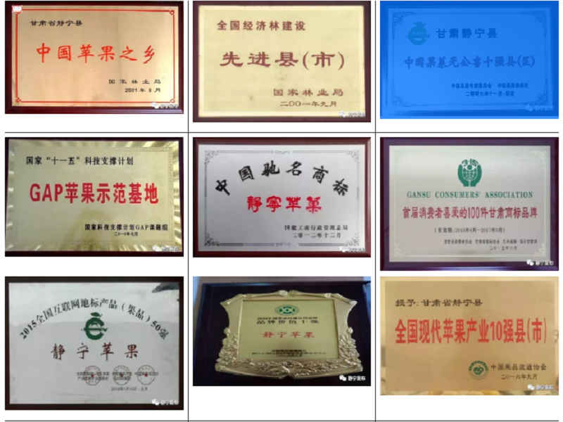 静宁县是我国北方优质果品最适宜栽培区,被原农业部评为“黄土高原优生苹果最佳栽植区域”,黄土层深厚,日照时数长,昼夜温差大,无公害,无污染,具有生产绿色产品得天独厚的自然条件,全县果园面积已达到100万亩,年产量78万吨,年产值32亿元,果品人均纯收入4900元。静宁县先后被授予"全国经济林建设先进县"、"中国苹果之乡"、“中国果蔬无公害十强县”和“全国现代苹果产业10强县”。