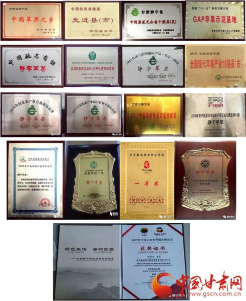 静宁苹果先后获得“中国驰名商标”、“首届消费者喜爱的100件甘肃商标品牌”、“2015全国互联网地标产品(果品)50强”和“2016中国果品区域公用品牌价值十强”、“2016全国果菜产业百强地标品牌”和“2016全国果菜产业最具影响力地标品牌”等荣誉,2017年6月,静宁苹果在中国工商报“商标富农和运用地理标志精准扶贫十大典型案例”评选活动中获得第三名,2017年11月静宁苹果被授予“2017年供给侧改革领军品牌”“中国果品区域共用品牌价值英雄”荣誉,2017年12月“2017年供给侧改革领军品牌”荣誉。2018年11月静宁苹果荣登“2018年度中国最受欢迎的苹果区域公用品牌十强”榜。2019年10月静宁红富士苹果荣获2019年中国北京世界园艺博览会国际竞赛优质果品大赛金奖。