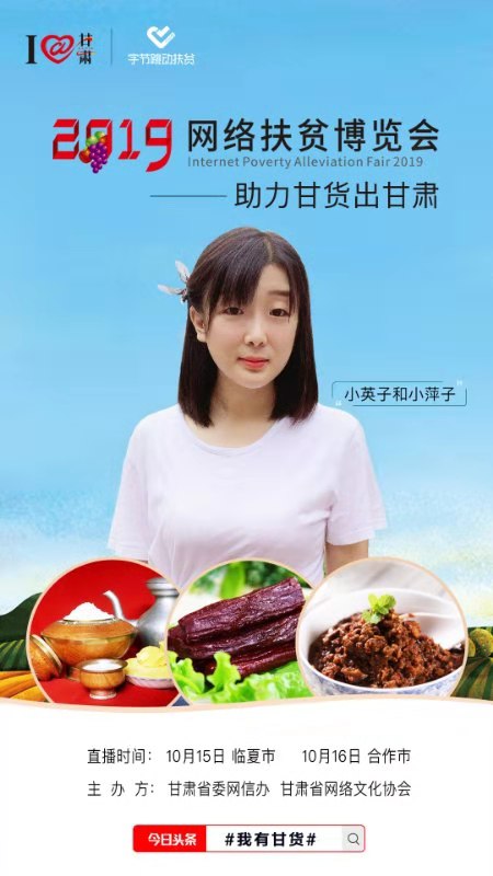 由甘肃省委网信办、甘肃省网络文化协会主办,临夏州委宣传部、临夏州委网信办、临夏市委宣传部、临夏市委网信办、临夏市商务局协办,北京字节跳动科技有限公司的“I@甘肃 2019网络扶贫博览会”临夏站网络直播活动于10月15日举行。