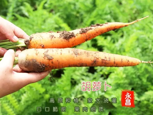 “永昌胡萝卜”现已成为永昌县一大特色产业,并通过国家农产品地理标志保护认证和(A级)绿色食品认证,全县胡萝卜总生产规模达3万亩,年产量达到12万吨,每年5-10月大量集中上市。