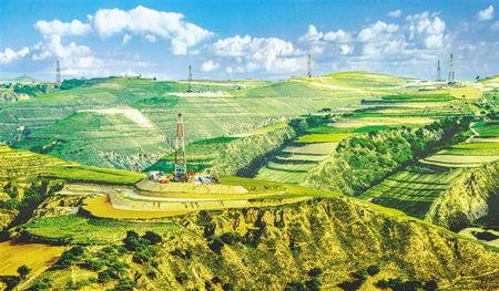 在加快油田勘探的同时,长庆油田创新实践新发展理念,展开前期工业化开采试验,集成应用地质工程一体化与储层体积改造的新技术、创建黄土塬地貌条件下产能建设生产组织的新模式,以平台化管理为核心,形成工厂化作业、智能化地面配套,快速推进国家级百万吨示范区建设,形成了高效开发模式。从2017年9月组织大规模产能建设,截至目前,庆城油田累计完钻水平井216口,投产油井100口,日产原油达到1464吨,年内生产原油将达到64万吨。到今年底,将完钻水平井255口,形成年产百万吨原油的能力。不仅如此,盆地中生界长7源内石油的成功勘探和有效开发,成为长庆油田二次加快发展年产油气当量上6000万吨现实接替储量。