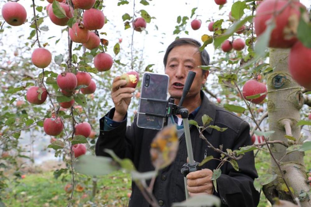 原来,举着手机穿梭于林间的张加成,正在淘宝的直播间里和粉丝们热烈互动。谁会想到,一位大山深处的普通老农会“触网生情”,成为当地年龄最大的主播,为家乡的苹果代言。