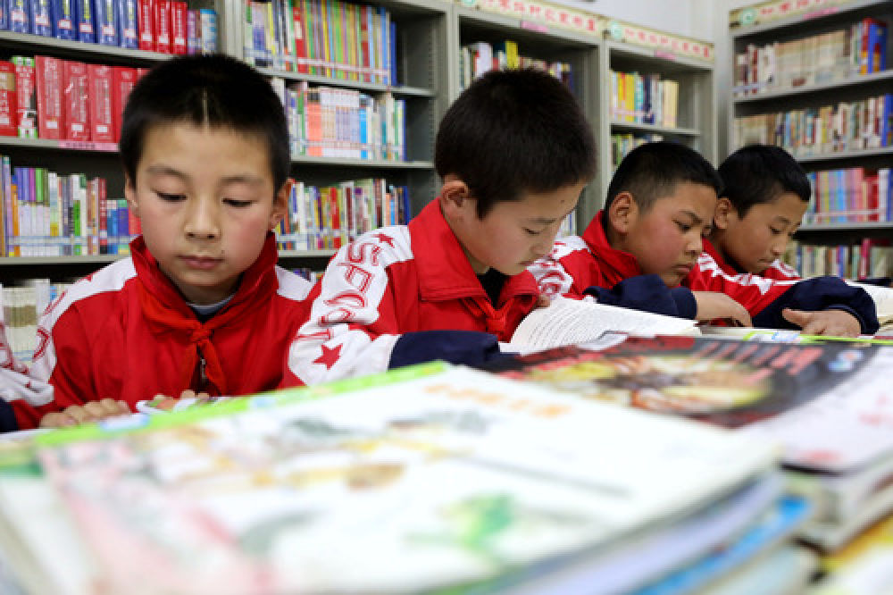 11月13日,在甘肃省天水市麦积区跑马泉镇什字坪村的农家书屋内,跑马泉镇团庄小学五年级学生放学后来到书屋阅读。新华社记者 郭刚 摄