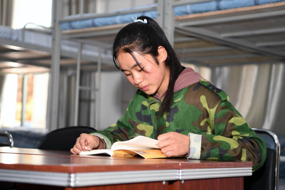 马发图麦在东乡县职业技术学校自己的宿舍内看书。新华社记者马宁摄