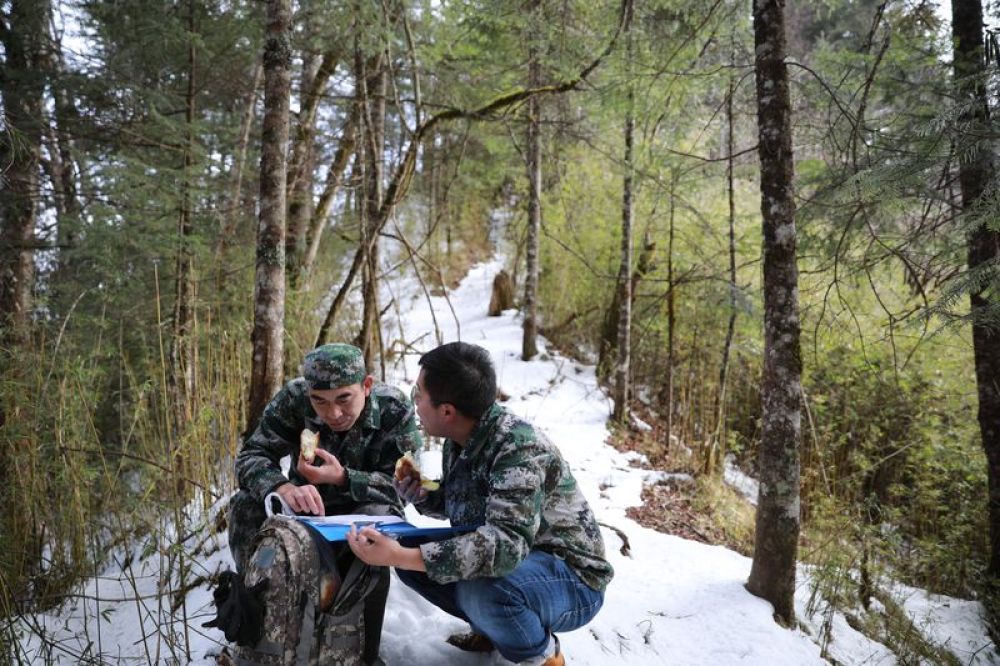 甘肃白水江国家级自然保护区内有野生大熊猫110只,保护区的森林巡护队常年守护着总面积超过18万公顷的野生大熊猫栖息地。巡护过程中,巡护员不仅要记录野生大熊猫活动踪迹、收集分析粪便、观察大熊猫食用竹生长情况,还要安装红外相机、整理视频监控数据、完善监测数据库等。