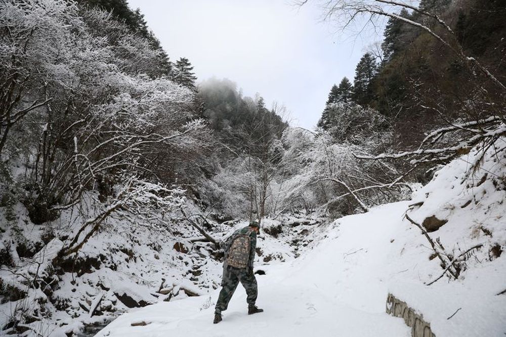 12月13日,巡护员张雄在巡护途中。新华社发(杜哲宇摄)