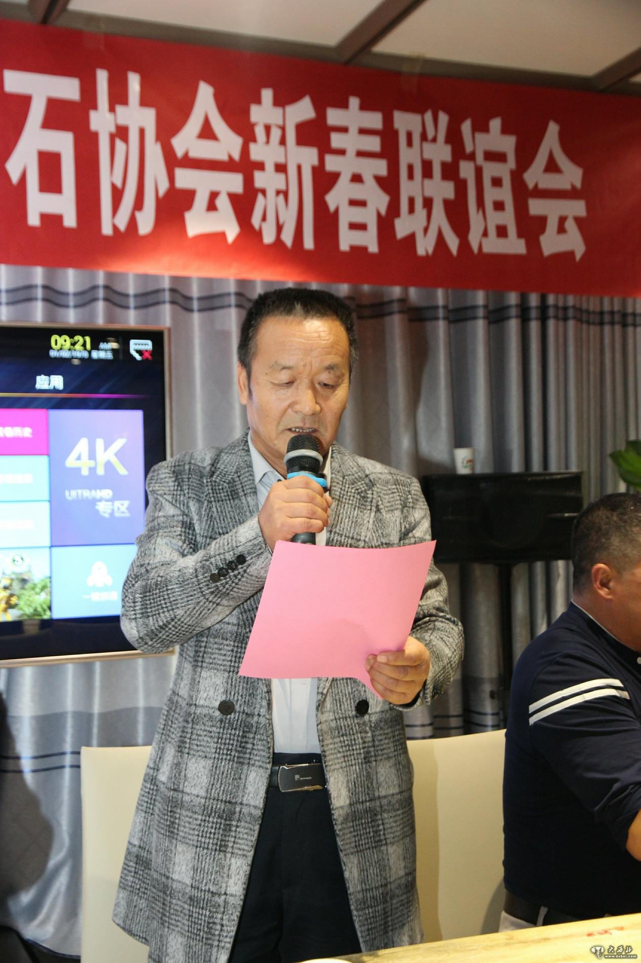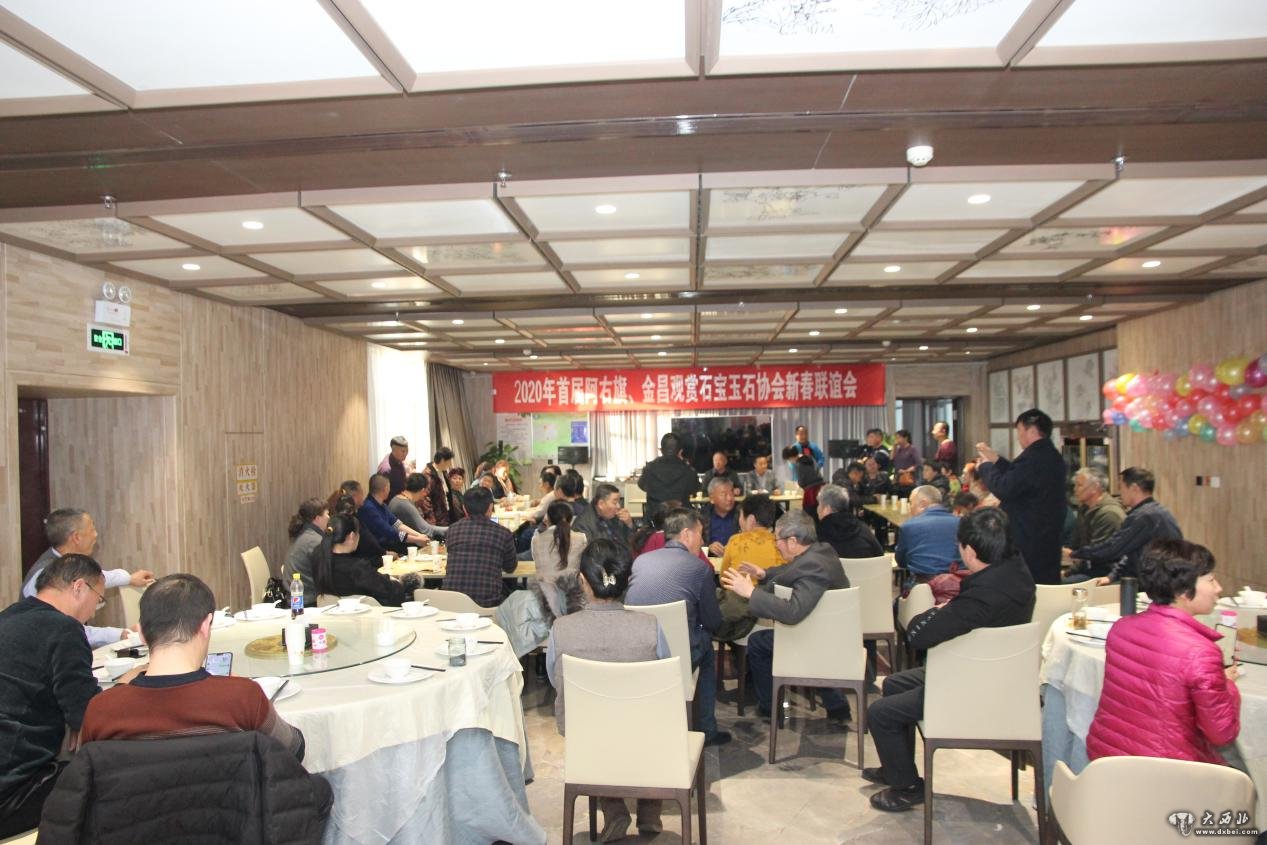大 西 北 网 讯 携手 与“石”俱进,感恩有你。2020年1月5日下午,晴空万里,阳光和煦,阿拉善右旗赏石苑大酒店内热闹有度,民乐华彰。来自内蒙古阿拉善右旗和甘肃金昌市的近百位奇石协会会员及奇石收藏爱好者,怀着喜悦的心情,欢聚一堂。共同参加了由阿右旗奇石协会和金昌奇石协会联合举办的“2020年观赏石宝玉石协会新春联谊会”。内蒙古阿拉善右旗奇石协会会长赵柏文、名誉会长巴雅尔、常务副会长孟合、甘肃省观赏石协会副会长田吉福、甘肃省观赏石协会常务理事-金昌镍都奇石馆余志勇、金川集团公司奇石根艺协会会长、金川电视台编辑张孝金以及“酱司令”酒武威总代理王学年等众多嘉宾共同出席了此次联谊会。