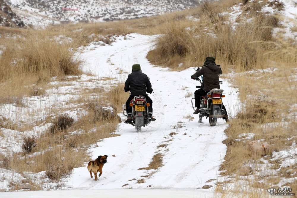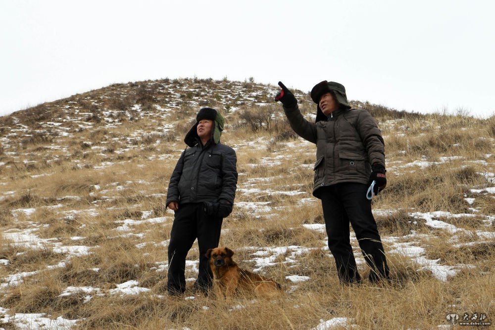 1月15日,“小黄”和三岔资源管护站护林员冯德俊(右)、张得团一起巡山。新华社记者马宁摄