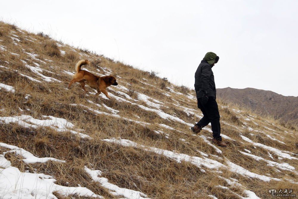 1月15日,“小黄”跟随三岔资源管护站护林员张得团一起巡山。新华社记者马宁摄