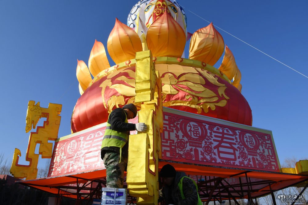 春节临近,甘肃省武威市凉州区白塔寺灯会进入最后的施工布置阶段。本次灯会主题为“白塔祈百福,民族一家亲”,共有各式彩灯35组,灯会将从农历腊月二十三持续到正月二十。
