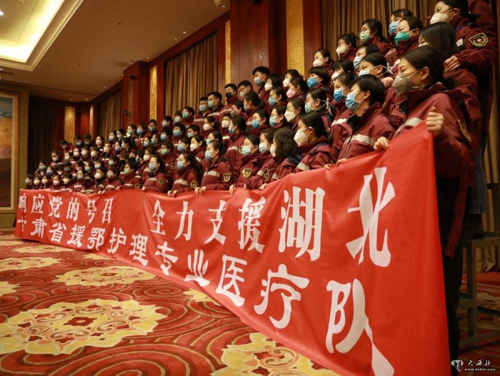 2月5日凌晨,甘肃省第二批援鄂护理专业医疗队出发前往武汉。医疗队由甘肃省13个市州、53家各级医疗机构派出的100名护理专业人员组成。新华社发(杜哲宇摄)