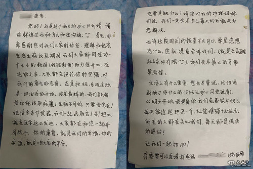 这是马明(化名)的主管护士长刘娟手写的鼓励信。新华社发(渭源县人民医院提供)